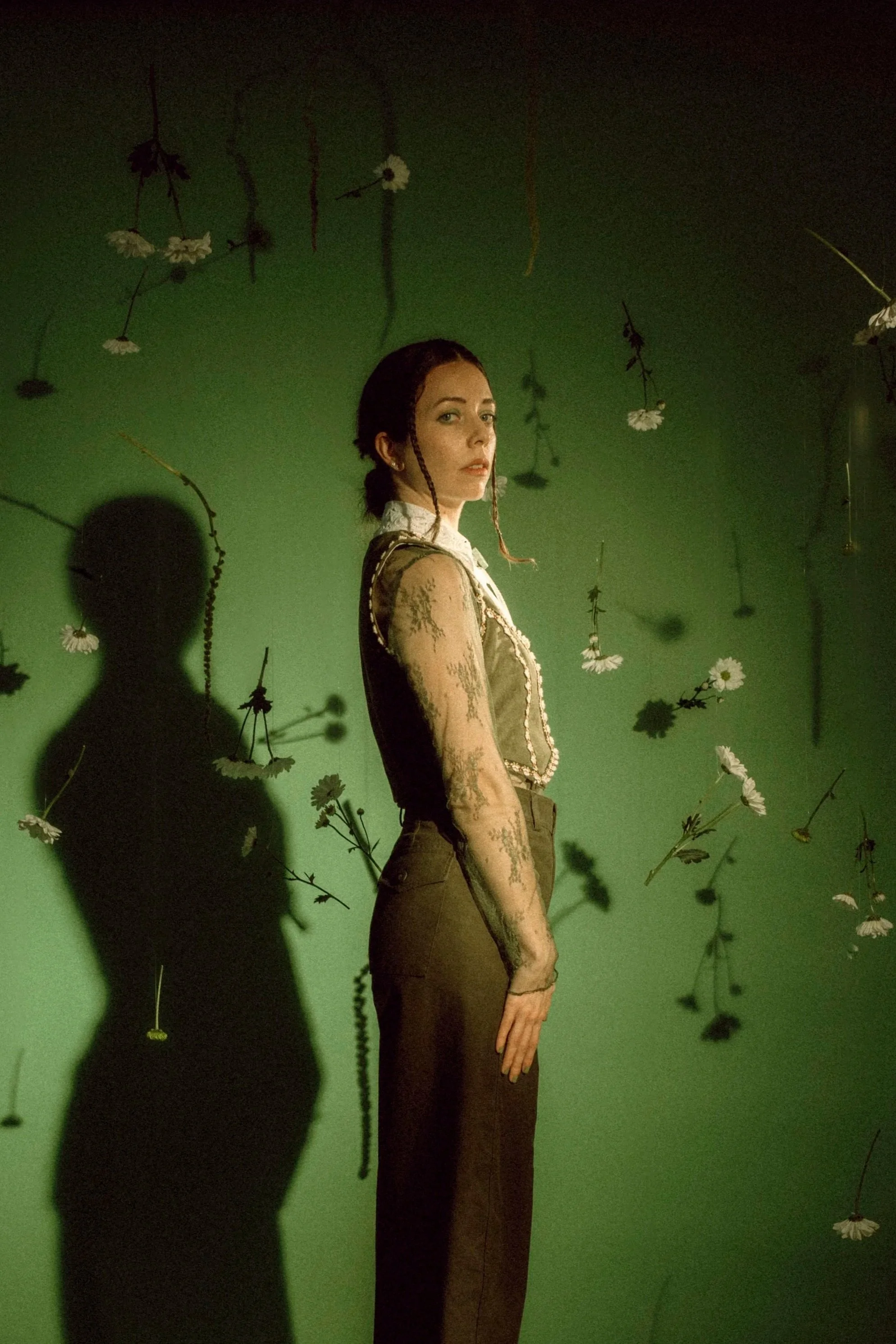 Under her artist moniker, she in green, she explores a whimsical, botanical-driven world. Her debut single, makeitalldaisies, is out now.